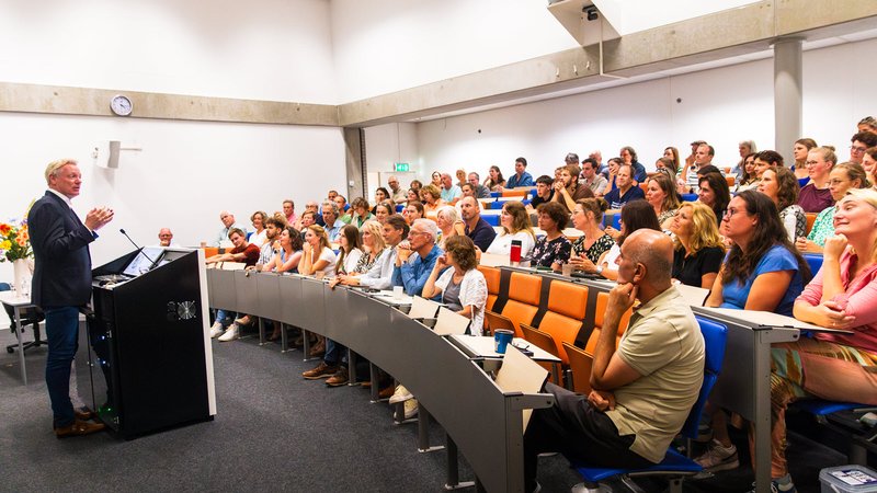 Vervolgens schetst Anneke de landelijke ontwikkelingen waarmee alle hoger kennisinstellingen te maken hebben: er is sprake van demografische krimp met minder instroom tot gevolg en de landelijke instroom daalt. Met het nieuwe hoofdlijnenakkoord zijn bezuinigingen in aantocht: de krimpgelden stoppen per 2026, de bekostiging per student gaat naar beneden én de internationale instroom staat onder druk. Ook is er een langstudeer maatregel aangekondigd. Hogescholen (en universiteiten) leggen zich hier niet bij neer. De hogescholen slaan de handen ineen via de Vereniging Hogescholen om tegen 3 punten in het verweer te komen: de minister wordt met een aangeboden petitie gevraagd de langstudeer maatregel te heroverwegen, over internationalisering vindt een grootschalige lobby plaats en er wordt volop ingezet op adequate financiering voor onderzoek.