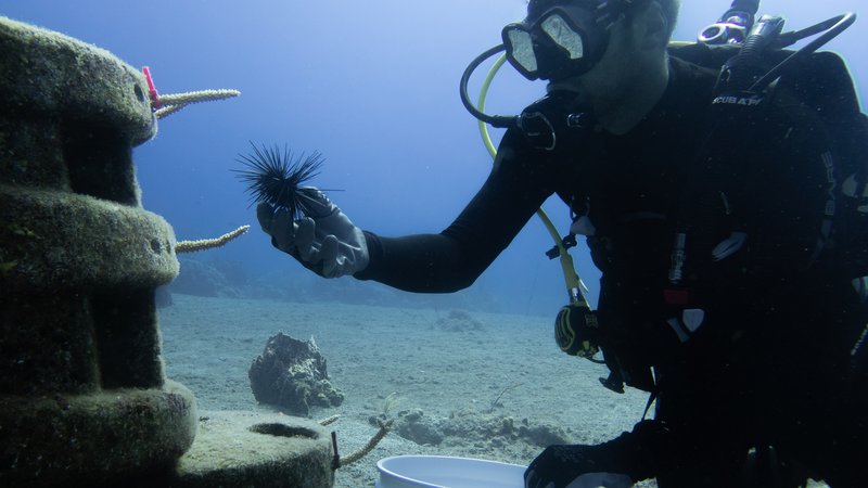 Voorbeelden van ons onderzoek zijn bijvoorbeeld de ontwikkeling van een nieuw type artificieel rif of het herstel van belangrijke algen etende zee-egels op koraalriffen.