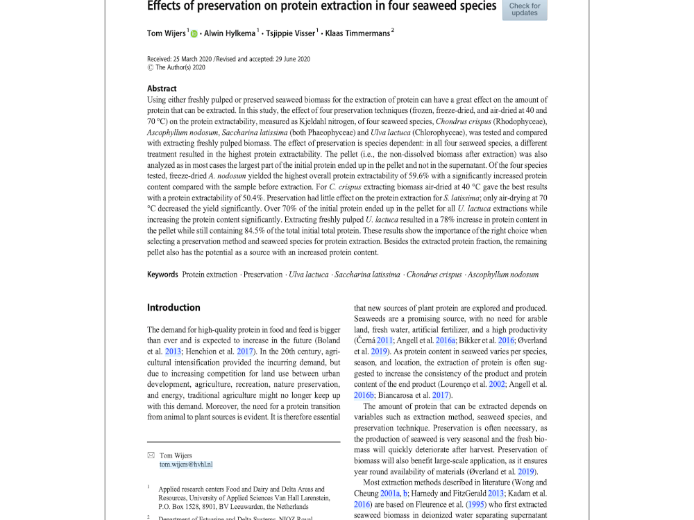 Download het artikel "Effects of preservation on protein extraction in four seaweed species" (pdf - 378 KB)