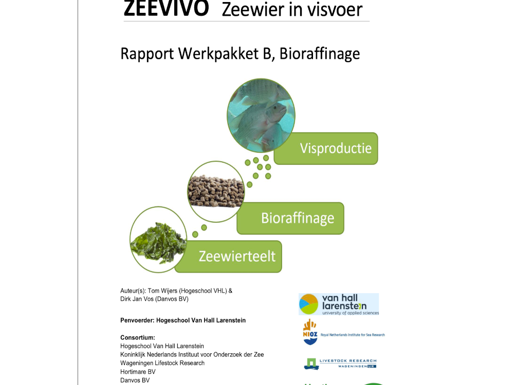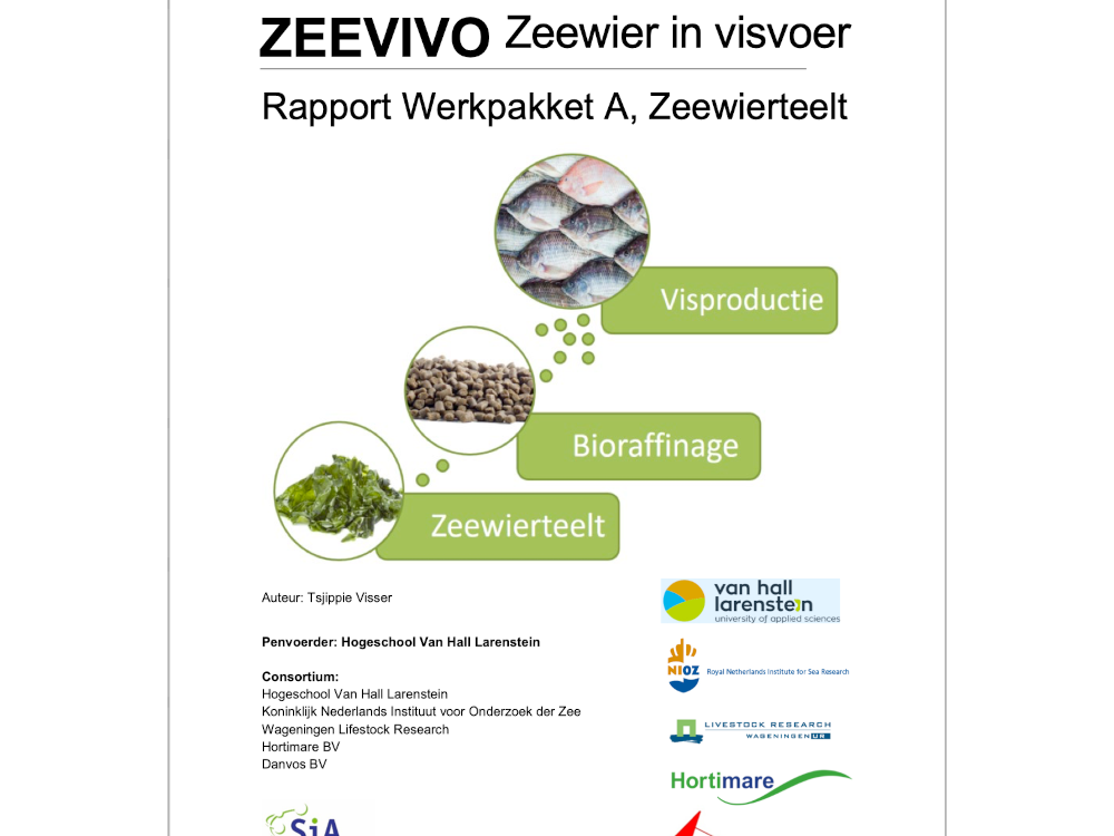 Hogeschool Van Hall Larenstein (HVHL), NIOZ, Wageningen University & Research, Danvos en Hortimare werken samen in het ZEEVIVO (Zeewier in Visvoer) project.