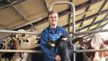 Ik zat al op het mbo voor melkveehouderij, maar vond die opleiding best makkelijk. Daarom wilde ik meer uitdaging voordat ik aan het werk ging. Werken moet je immers je hele leven nog doen, en je hersenen kun je nu nog goed gebruiken. Hoewel ik thuis geen boerderij heb, werkte mijn vader bij een loonbedrijf. Zo ben ik erin gerold en op boerderijen gaan werken. Inmiddels ben ik zzp’er en kom ik op allerlei bedrijven waar ik alle dagelijkse werkzaamheden uitvoer. De opleiding sluit daar goed op aan. Na mijn studie start ik een nieuw bedrijf: een handelsbedrijf in vier dierlijke producten. Daar heb ik ontzettend veel zin in.