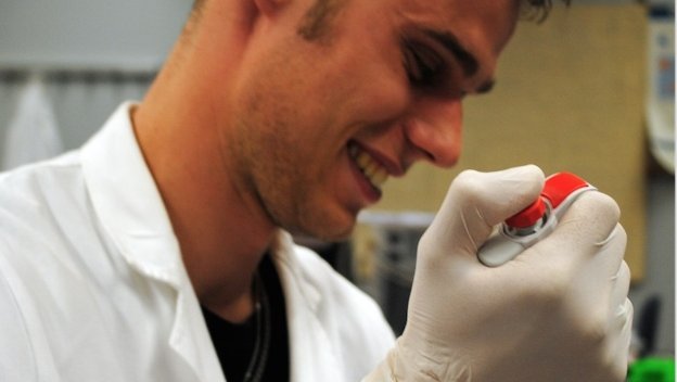 Student Biotechnologie Klaas van der Laan komt van het mbo. Wat hem vooral aanspreekt is dat wetenschappelijke vraagstukken hier heel praktisch worden benaderd. "Deze opleiding is echt een uitdaging voor mij en ik vind het superleuk om te doen."