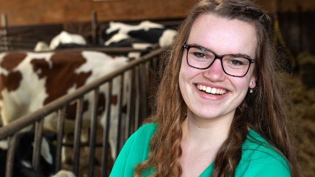 Eline Hoekstra is tweede jaars student Dier- en Veehouderij. "Mijn ouders hebben thuis een melkveebedrijf met 85 melkkoeien. Mijn vader heeft altijd ideeën om het bedrijf te optimaliseren en staat open voor input van anderen. Dat geldt ook voor onderwerpen die tijdens mijn opleiding aan bod komen en het leuke is dat ik deze dingen thuis in de praktijk mag uittesten."